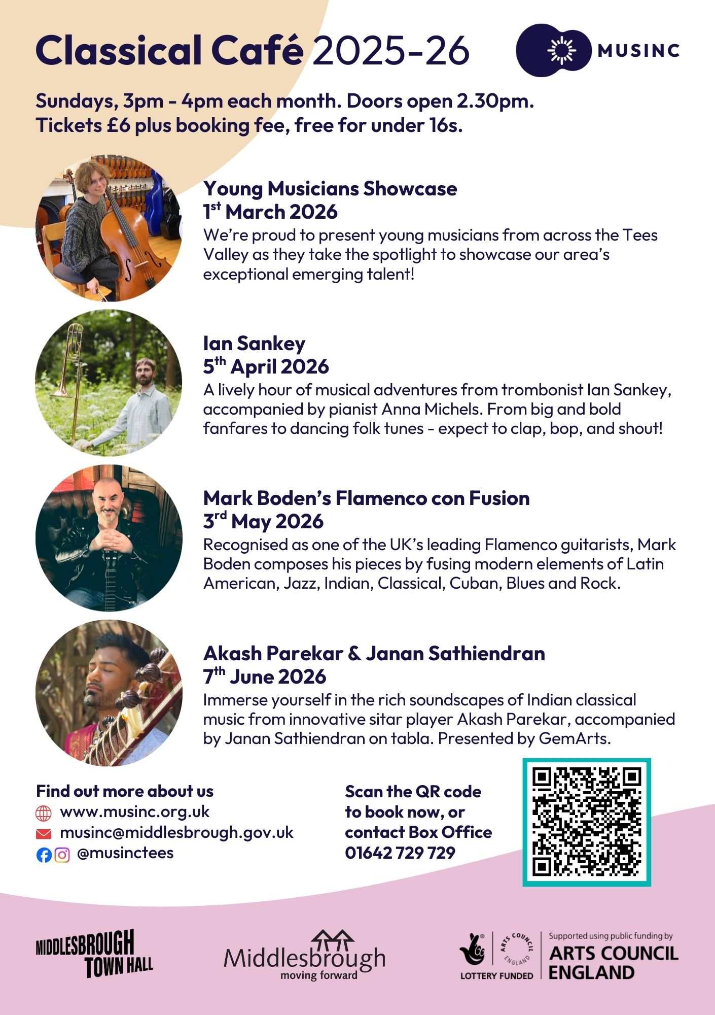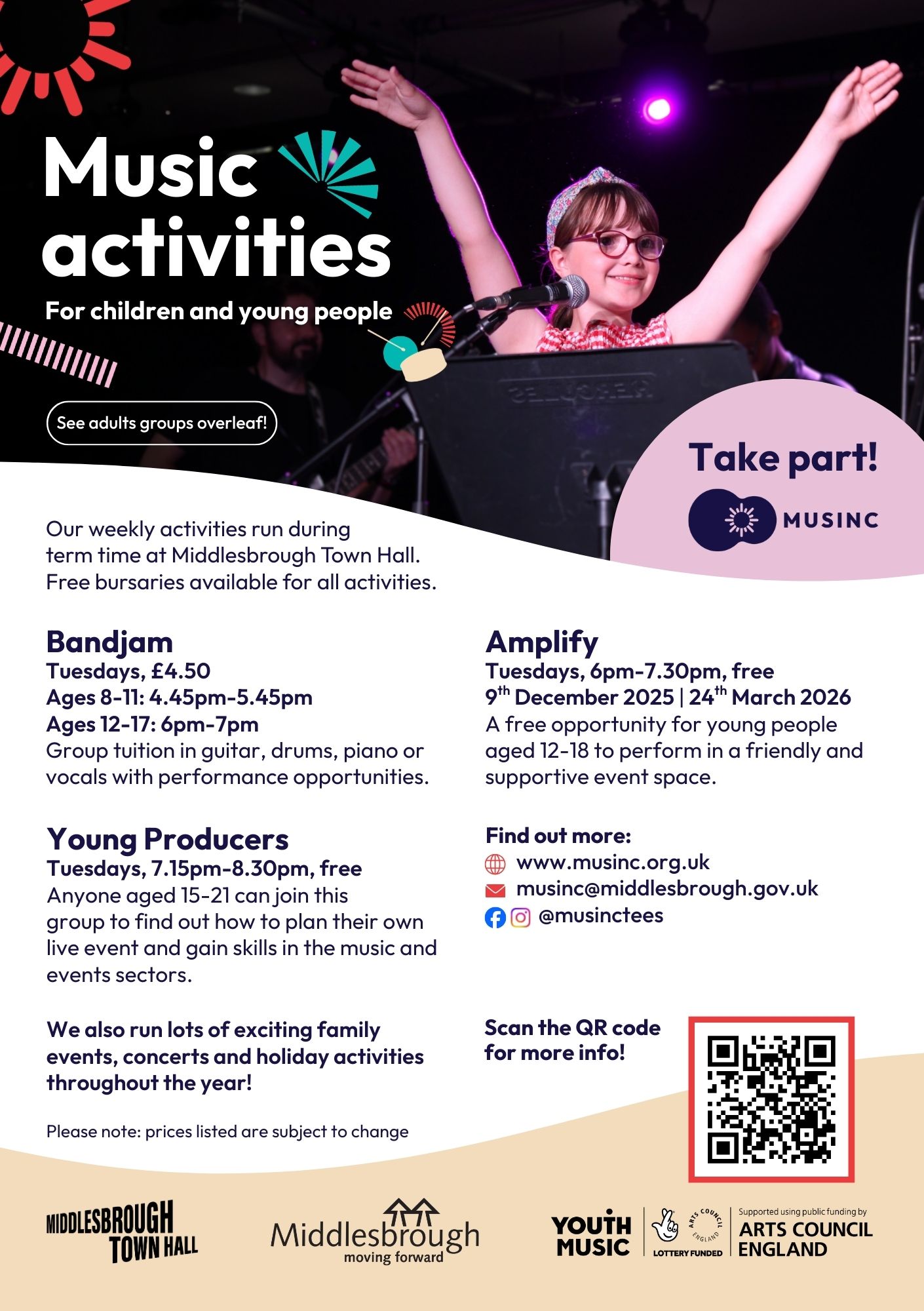 Above are some examples of my work for Musinc – the music engagement programme at Middlesbrough Town Hall. In my role as Marketing Coordinator, I have designed and created digital and print materials to promote the programme’s music opportunities for people of all ages, abilities and backgrounds in Middlesbrough. In my role, I also photographed and filmed a lot of content for use across the programme.